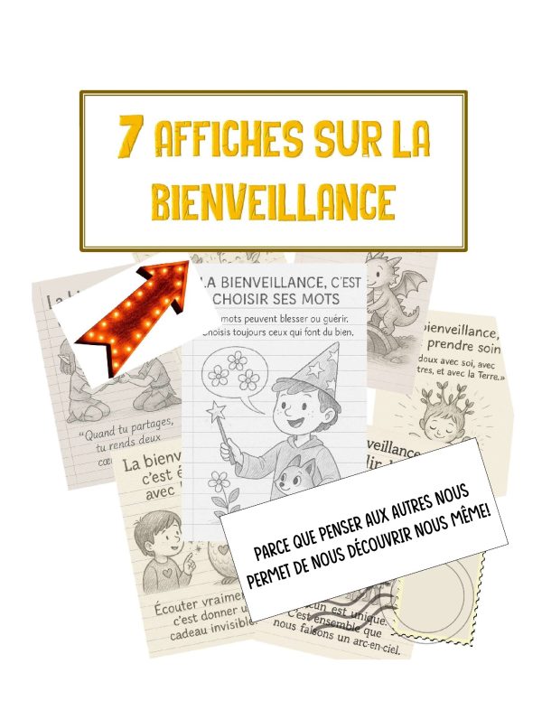 Série de 7 affiches illustrées pour aider les enfants à découvrir et pratiquer la bienveillance au quotidien.