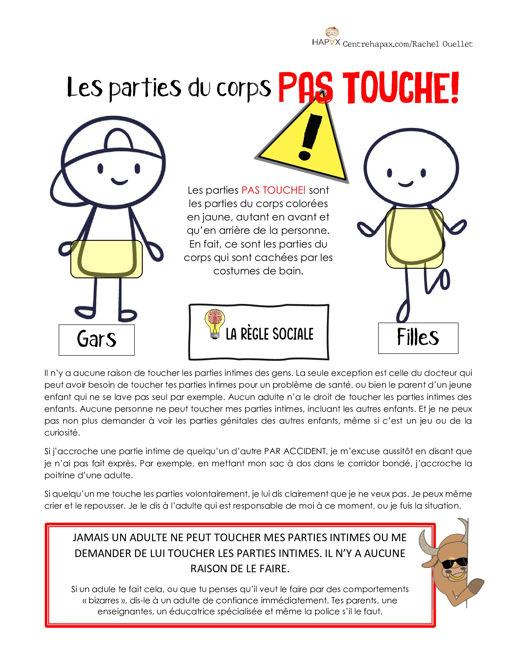 Soutien visuel pour apprendre aux enfants l’intimité et pour la protection des d’abus sexuels.